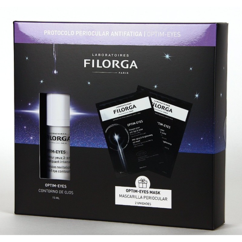 El cofre filorga optim-eyes es el tratamiento ideal para revitalizar la mirada y combatir los signos de cansancio. Incluye el contorno de ojos optim-eyes (15 ml), que ayuda a reducir visiblemente bolsas, ojeras y arrugas, y dos mascarillas optim-eyes mask, diseñadas para proporcionar un efecto descongestionante, hidratante y alisador inmediato. Gracias a su acción multifunción, este cofre deja el contorno de ojos más luminoso, descansado y rejuvenecido. Perfecto para todo tipo de pieles y especialmente indicado para miradas apagadas o fatigadas. Un imprescindible para regalar o para mimarte con un cuidado experto